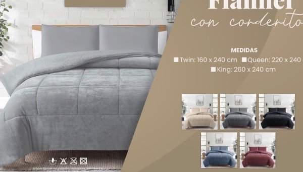 los acolchados de flannel con corderito son edredones de invierno diseñados para ofrecer máxima calidez y suavidad. Su parte superior es de una tela flannel suave y el reverso es de corderito al tono